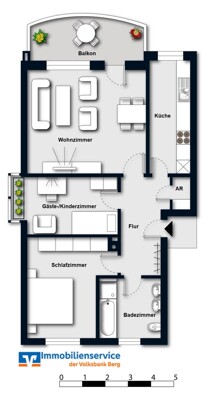 Vom großzügigen Wohn- und Essbereich gelangen Sie auf den überdachten Balkon. Zur Wohnung gehört eine Garage, die bereits im Kaufpreis enthalten ist. Von dort erreichen Sie das Haus trockenen Fußes. Ein separater Kellerraum bietet zusätzlichen Stauraum.